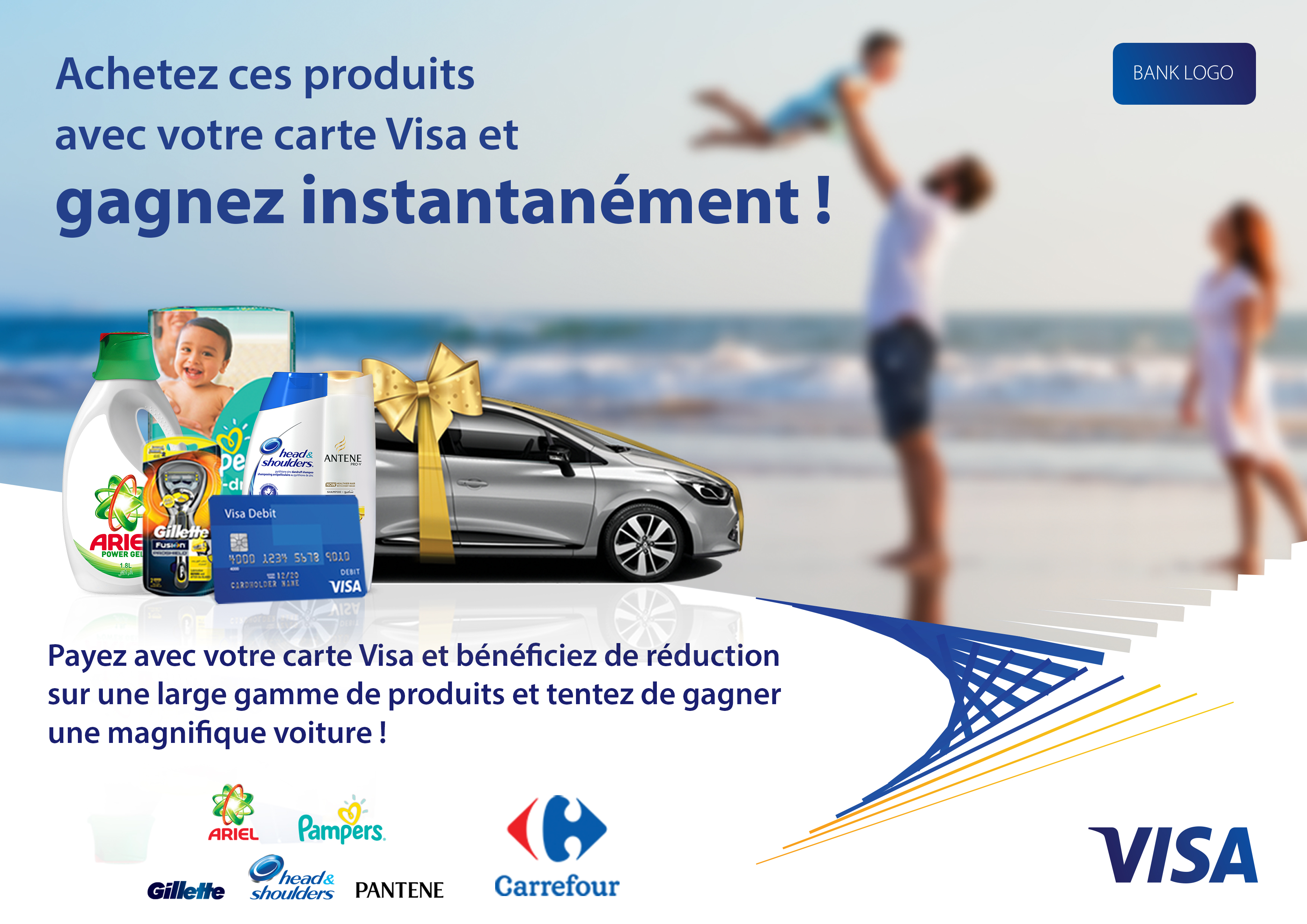 Payez avec votre carte Visa entre le 1er juillet 2018 et le 31 juillet 2018 chez Carrefour pour une sélection de produits P&G et obtenez un coupon-rabais ainsi qu’une chance de gagner la voiture de vos rêves !