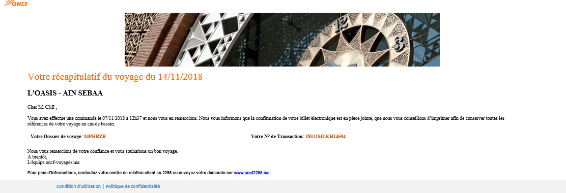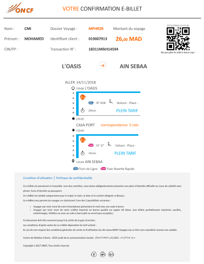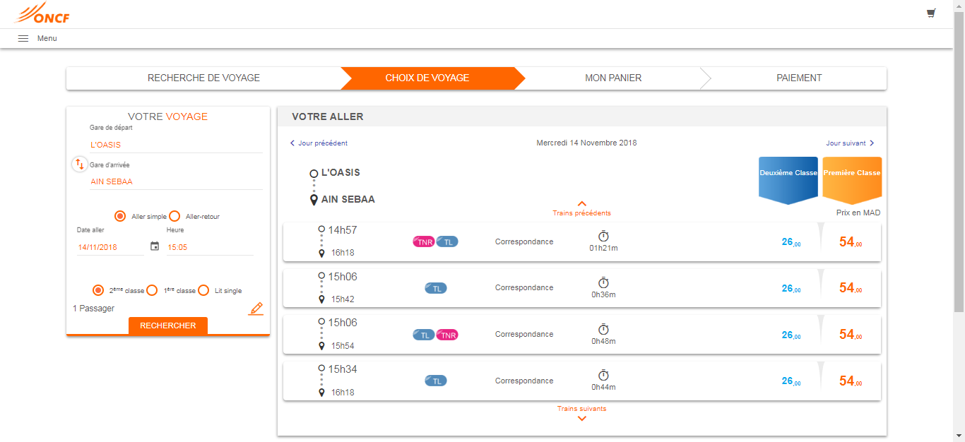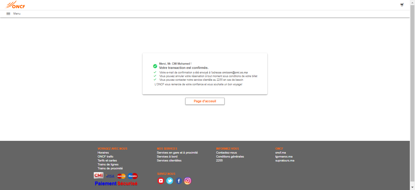 Sur http://www.oncf.ma, achetez votre billet en ligne en quelques clics grâce à votre carte bancaire.