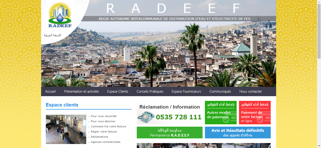 Accédez au site web de la RADEEF via le lien www.radeef.ma.