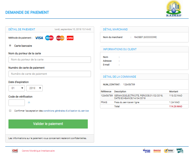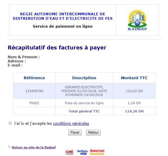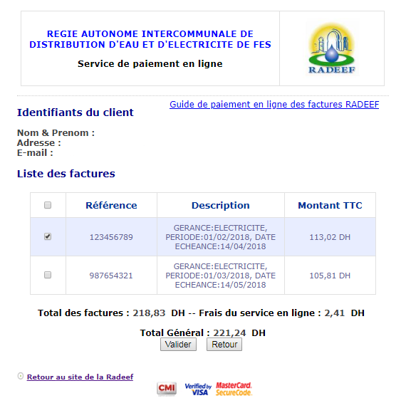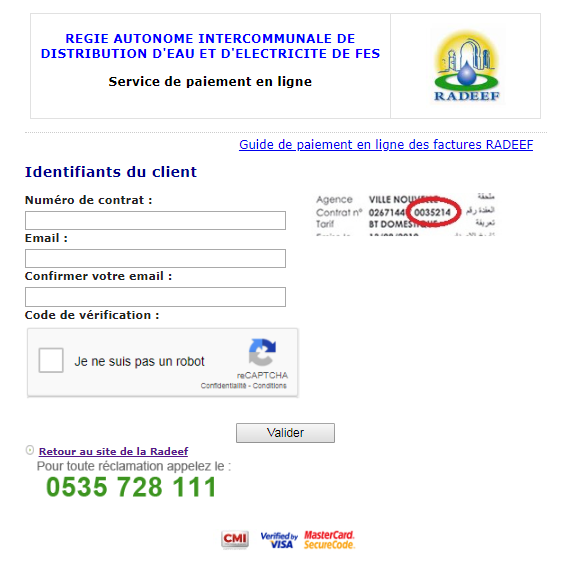 Guide de paiement en ligne par carte bancaire des factures de la RADEEF