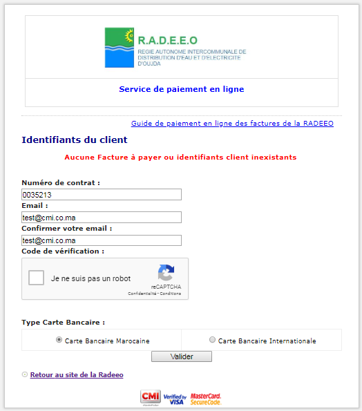 Votre paiement sera constaté au niveau de votre agence RADEEO le jour J+1 (ou J+2 si le paiement est effectué après 22h) après le paiement.