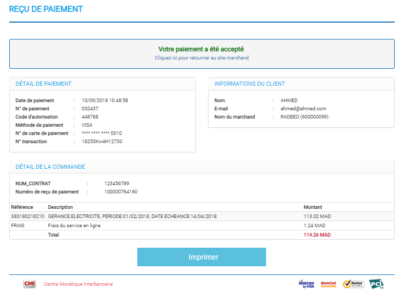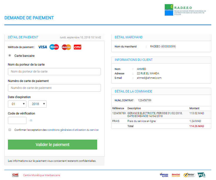 Une fois vous cliquez sur le bouton « Payer », vous allez être redirigé vers la plateforme sécurisée du CMI pour effectuer votre paiement.