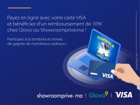 Ainsi, du 29/03/2021 au 11/04/2021, pour les premiers paiements en ligne sur les sites Glovo et Showroomprive.ma, les détenteurs de carte Visa bénéficieront d'un remboursement de 10%.